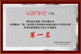万科E区三期二标荣获万科集团中西部区域2017年3季度综合评估第一名